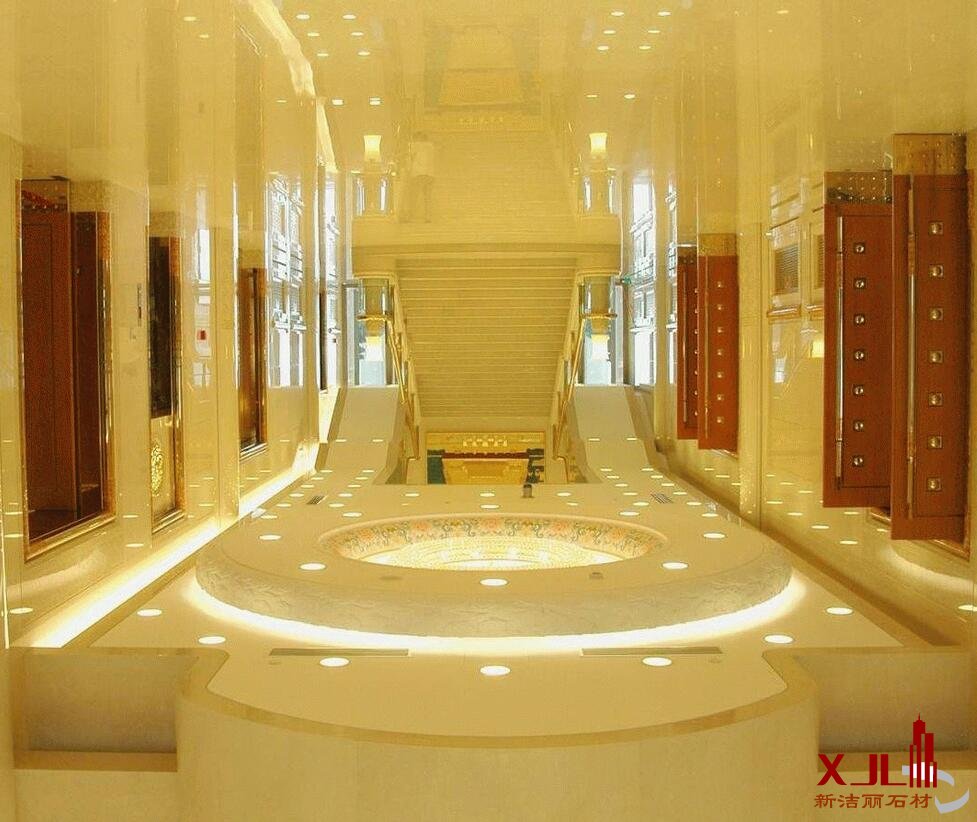 2、再结晶处理,对大理石进行再结晶处理是比较流行的一种大理石保养方法, 大理石再结晶分为两个部分,一部分是指机械工具部分,另一部分是专用化学材料部分;化学材料也又为两种:一种是花岗石再结晶,另一类是大理石再结晶。石材结晶的基本原理是将一些专用化学材料借助机械磨擦时产生的热量,与大理石表层的结构产生结合反应,产生新的坚硬的结晶层,使用这些石材再结晶系统对花岗石和大理石保养,可以使大理石地面得到光亮清新自然的效果。还能提高大理石表面的耐磨程度,使其光泽更持久。一般情况,花岗石地面两年作一次这样的保养就可以了。但大理石地面由于质地的差异,一般需要6个月左右就要做一次这样的保养,但具体也要看大理石表面磨损的程度而定。